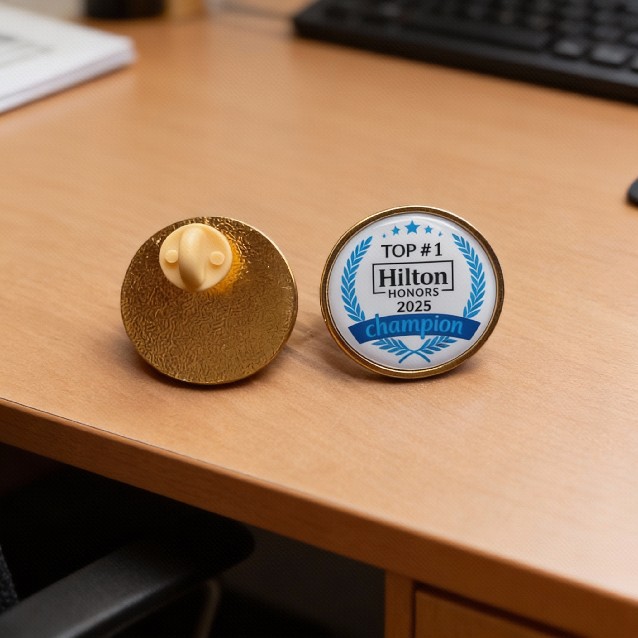 Fabricamos pines resinados personalizados en Bogotá para empresas, instituciones y eventos corporativos que buscan fortalecer su identidad de marca con acabados profesionales. Nuestros pines corporativos cuentan con recubrimiento en resina transparente que aporta brillo, protección y mayor durabilidad